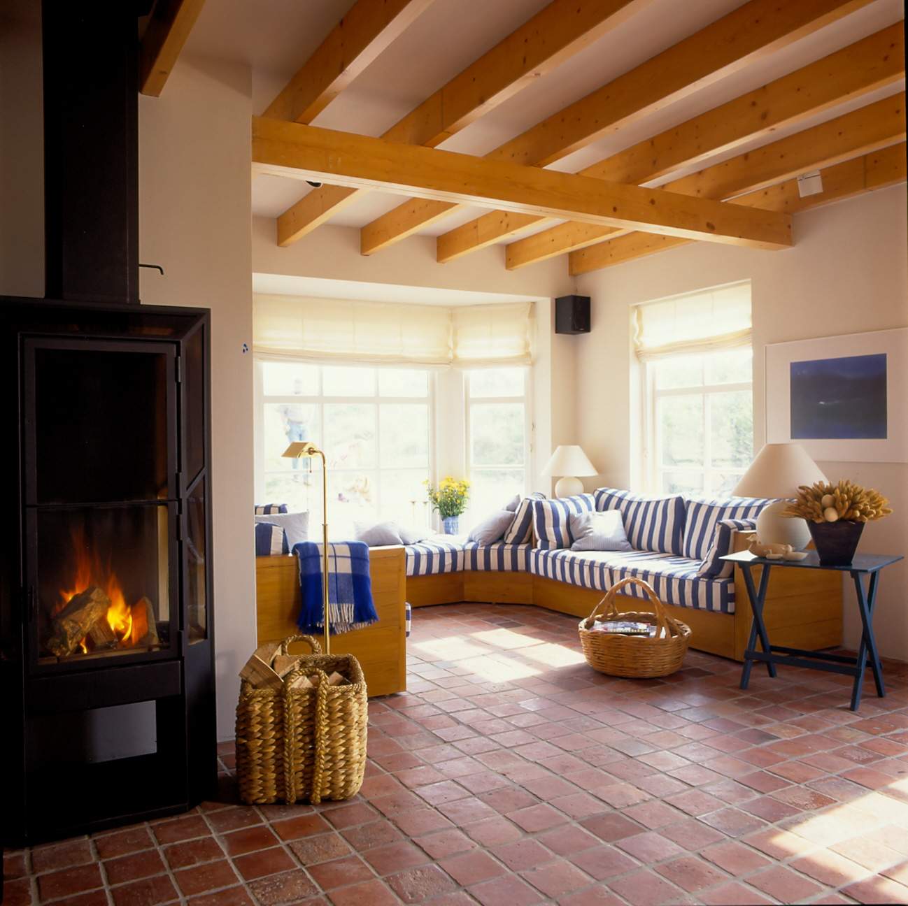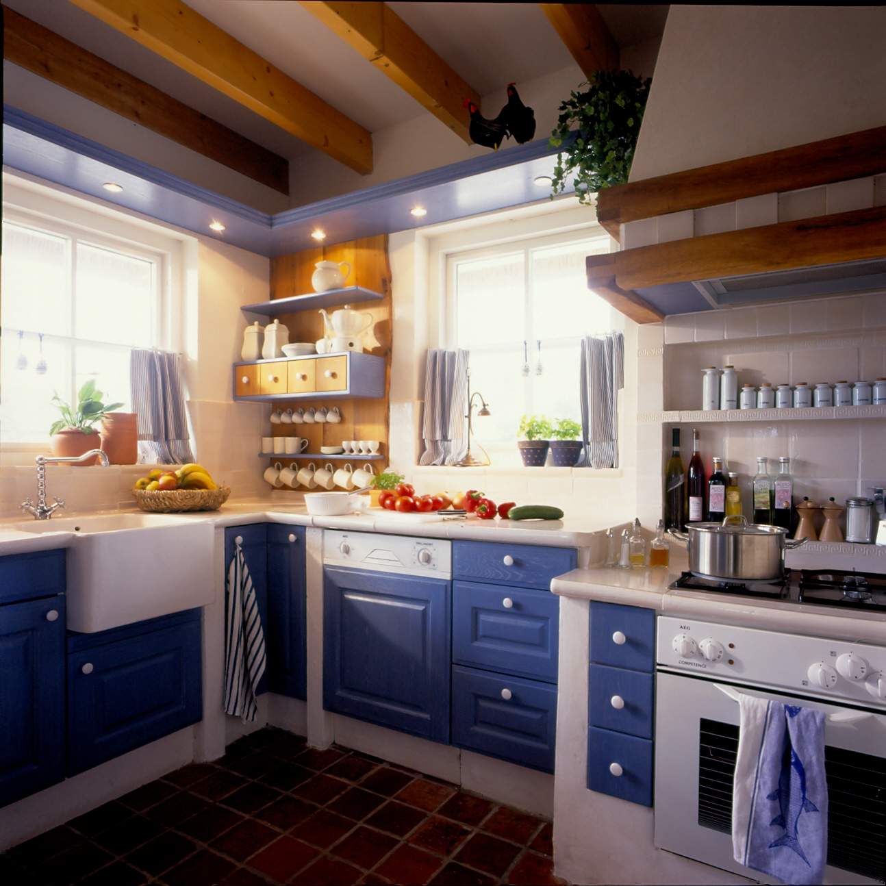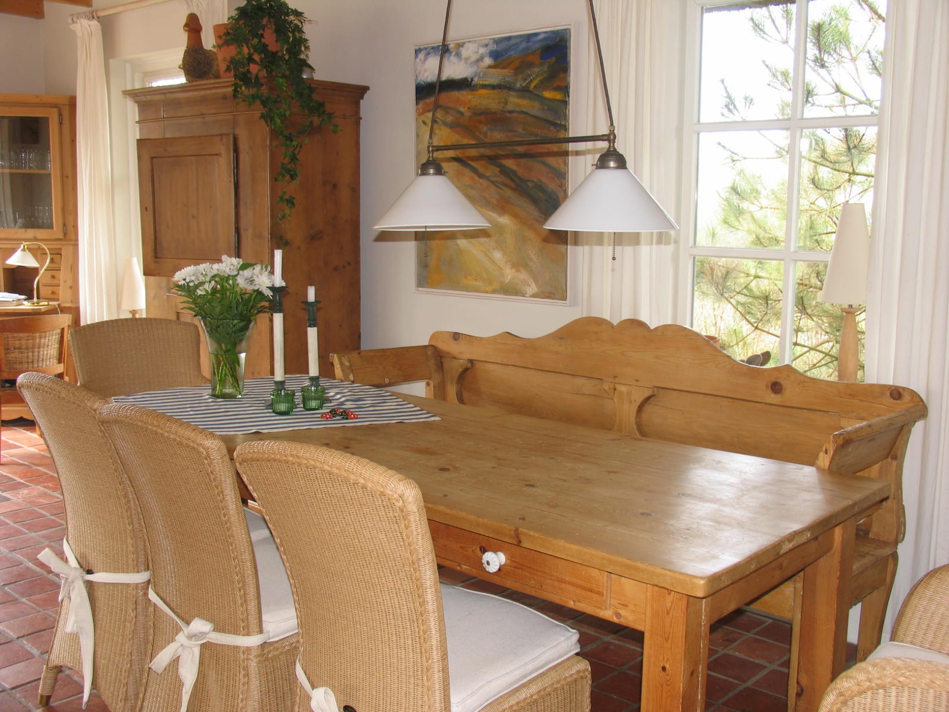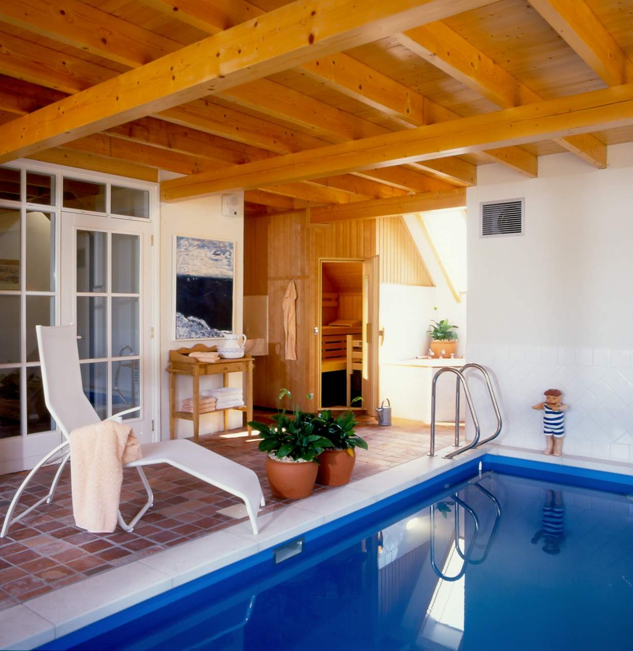Antike Fliesen und alte holländische Weichholzmöbel geben dem Haus seine ganz besondere Atmosphäre. Die Waschbecken und Keramikfliesen in Küche und Bädern sind nach indivudueller Vorgabe handgearbeitet. Das passenede Porzellan von Villeroy und Boch unterstreicht die Freude beim Kochen in der perfekt ausgestatteten Küche. Im 6 x 3m großen Pool, können sich die Kleinen bei schlechtem Wetter den ganzen Tag austoben. Die Gegenstromanlage bereitet auch Ausdauerschwimmern Freude.